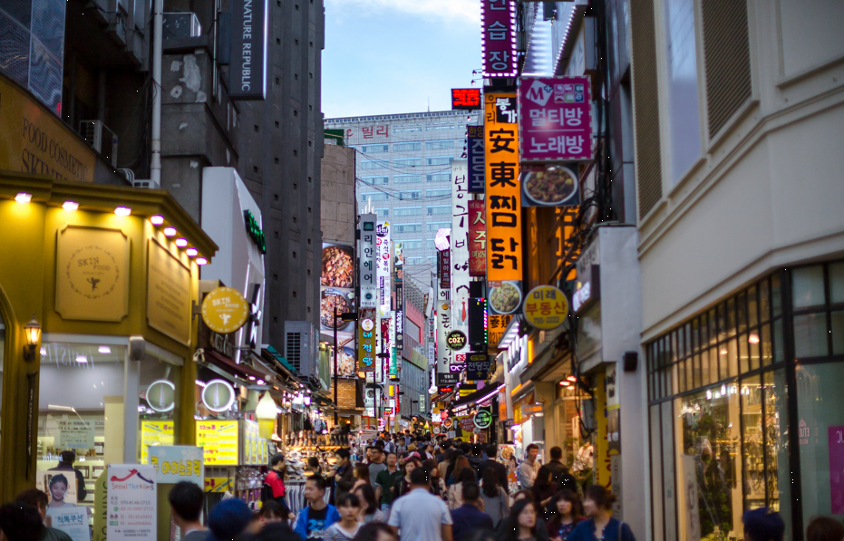 - Characteristics & Things to Enjoy: Myeongdong is Seoul's premier shopping and cultural hub. You'll find everything from global brands to popular Korean beauty and local fashion brands all in one place. Cosmetics shopping is especially popular among foreign exchange students. The area is also packed with street food vendors, making it a must-try experience for Korean street food (hotteok, gyeran-ppang, cheese tteokbokki, dakkochi, grilled lobster, etc.).